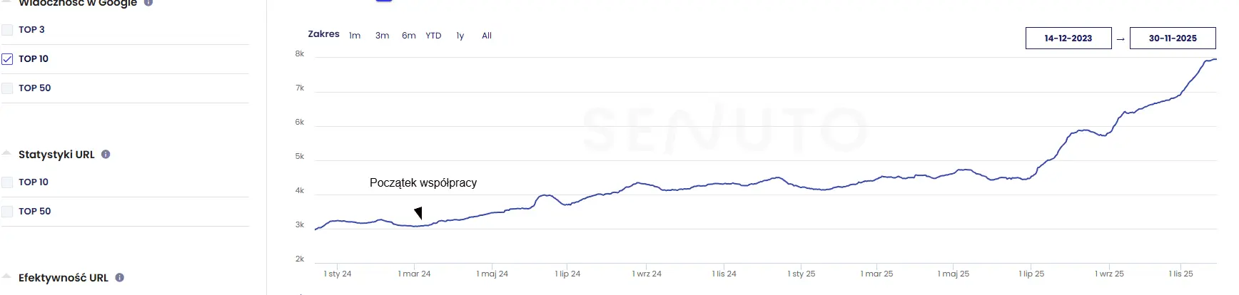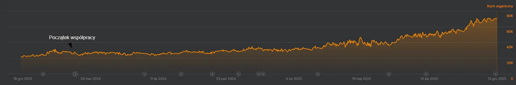 Na wynik końcowy bardzo mocno wpłynęła dobra współpraca z klientem. Stały kontakt i szybkie decyzje umożliwiały precyzyjne dobieranie działań do aktualnych potrzeb, sezonowości i priorytetów sprzedażowych. Dzięki temu optymalizacje nie były robione tylko pod SEO, ale przede wszystkim pod wzrost, który widać w efektach biznesowych..